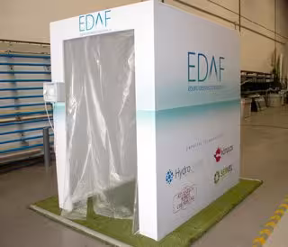 Este prototipo EDAF es un sistema que precisa de suministro de agua y electricidad y genera ozono en una concentración inferior a 5 ppm. Así, durante 30 segundos, las personas permanecen en la zona de tratamiento de desinfección por ozono nebulizado.