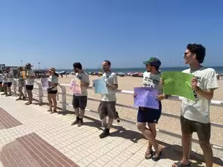 La protesta se ha llevado a cabo en la playa de Valdelagrana de El Puerto de Santa María, poniendo a esta como "ejemplo de masificación turística como tantos otros en la provincia de Cádiz". Así, en este municipio, la responsable de los jóvenes ecologistas ha lamentado que se está convirtiendo "en un parque temático" donde todo lo que se programa se dirige "al turista", "desplazando" a la población local.