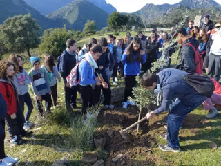 Asimismo alumnos del CEIP Albarracín de El Bosque y del CEIP Benafélix de Ubrique han participado en la iniciativa que ha comenzado con la plantación de una encina en el Mirador del Puerto de los Acebuches.