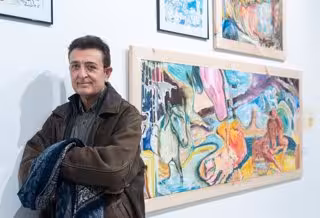 Archivo - Manolo García posa junto a las obras de su exposición.. - Gustavo Valiente - Europa Press - Archivo