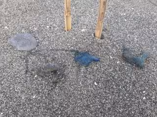 Tres ejemplares pequeños de carabelas portuguesas halladas en la playa de Santa Bárbara en La Línea de la Concepción (Cádiz). - AYUNTAMIENTO DE LA LÍNEA