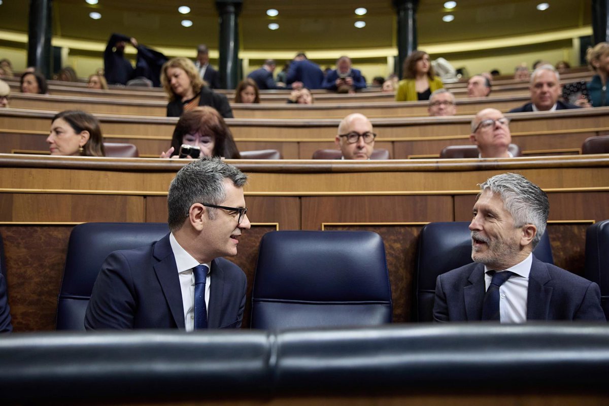 Archivo - El ministro de la Presidencia, Relaciones con las Cortes y Justicia, Félix Bolaños (i) y el ministro de Interior, Fernando Grande-Marlaska (d), durante una sesión de control al Gobierno, en el Congreso de los Diputados. - Jesús Hellín - Europa Press - Archivo