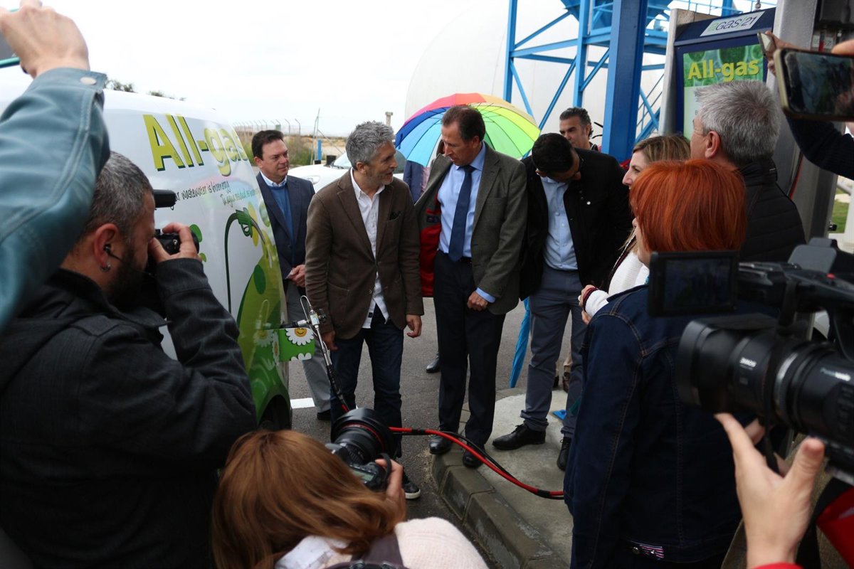 Así, acompañado del alcalde, José María Román, y la presidenta de Diputación, Irene García, ha conocido el proyecto All-Gas, a través del cual se recicla las aguas depuradas de los hogares chiclaneros hasta su transformación en biogás para vehículos, siendo ya siete los coches que desde la firma Aqualia, responsable del proyecto que cuenta con financiación de la Unión Europea y de la empresa municipal Chiclana Natural, circulan a diario impulsados por biogás, así como dos autobuses del servicio de transporte urbano.