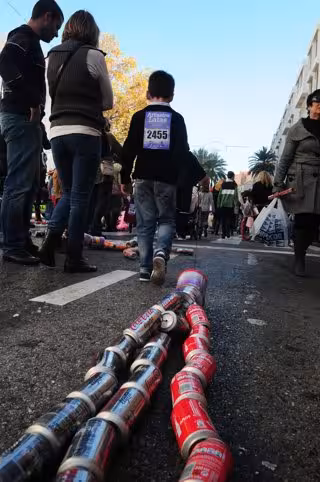 Miles de niños han salido este jueves a la calle en Algeciras (Cádiz) para evitar que los Reyes Magos se duerman participando en el tradicional arrastre de latas, que está considerado una 'Fiesta Singular'.