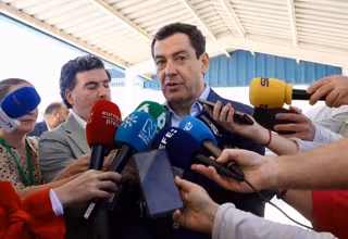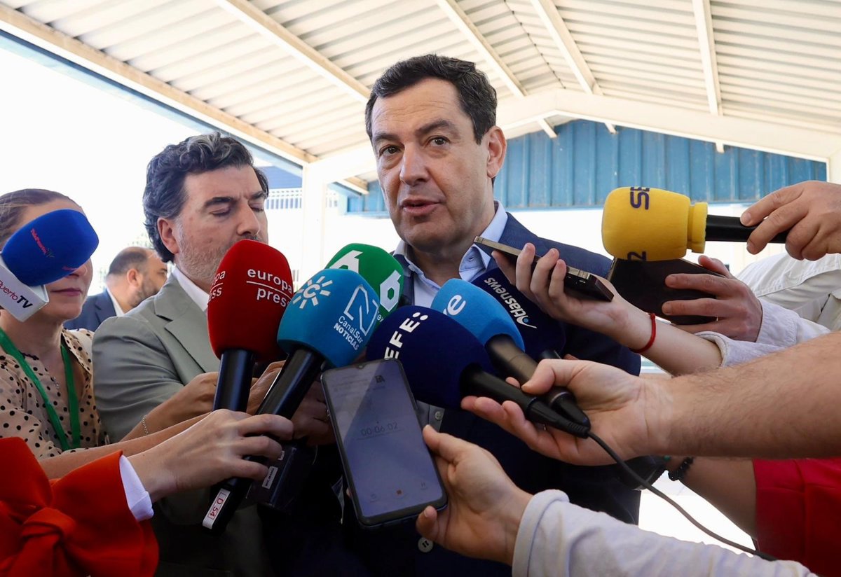 Son declaraciones que Juanma Moreno ha realizado este viernes a preguntas de los periodistas en una atención a medios en El Puerto de Santa María (Cádiz), municipio al que se ha trasladado para asistir a la fase final de la Liga M100 'Más vida'.