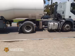 Rescatan a un motorista atrapado entre las ruedas de un camión cisterna cargado con gasolina en La Línea - BOMBEROS CÁDIZ