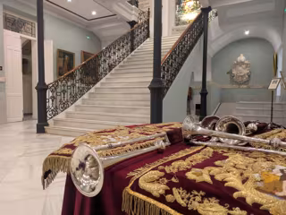 El Museo de las Cortes, dependiente de la Delegación municipal de Cultura del Ayuntamiento de Cádiz, expone este miércoles 1 de abril y el próximo Sábado Santo los bienes culturales e históricos que formarán parte del desfile de la Corporación Bajo Mazas, que procesionará en la estación de penitencia de la cofradía del Santo Entierro por la capital.
