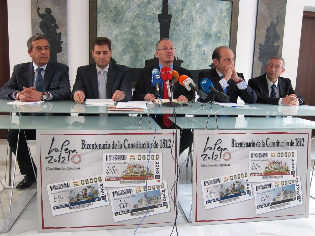 El delegado territorial de la ONCE en Andalucía, Ceuta y Melilla, Patricio Cárceles, ha presentado este miércoles los tres sorteos que la organización va a dedicar los días 20,21 y 22 de marzo al Bicentenario de la Constitución de 1812. Así, contribuirá a difundir la efeméride en toda España a través de 15 millones de cupones con imágenes conmemorativas.