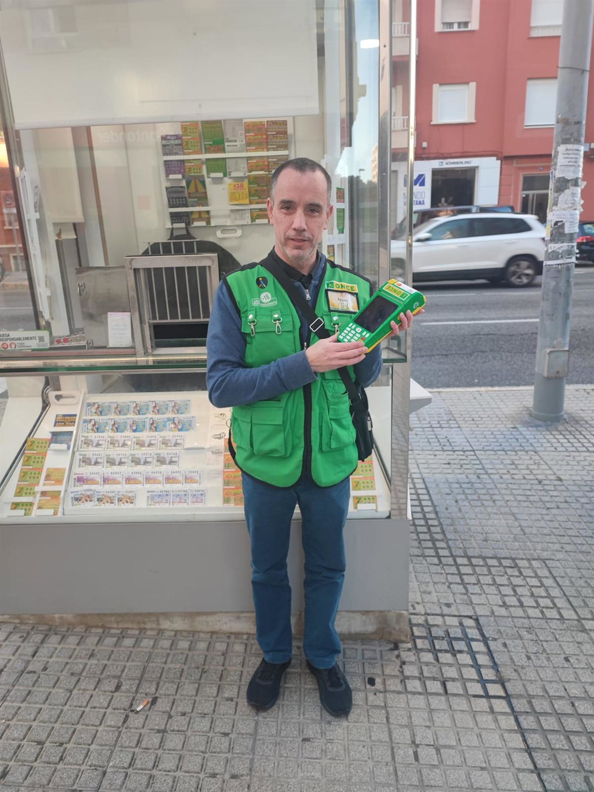 El vendedor de la ONCE, Agustín Flores, en su puesto en Cádiz - ONCE