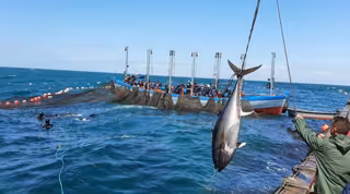 La Organización de Productores Pesqueros de Almadrabas (OPP51) ha comenzado oficialmente este lunes la campaña de pesca del atún rojo con la primera 'levantá' de la almadraba Punta Atalaya de Conil, a la que le siguen Zahara de los Atunes y Tarifa. Un barco con 29 ejemplares atunes rojos 100% salvajes, descargados en el Puerto de Barbate y directamente ronqueados.