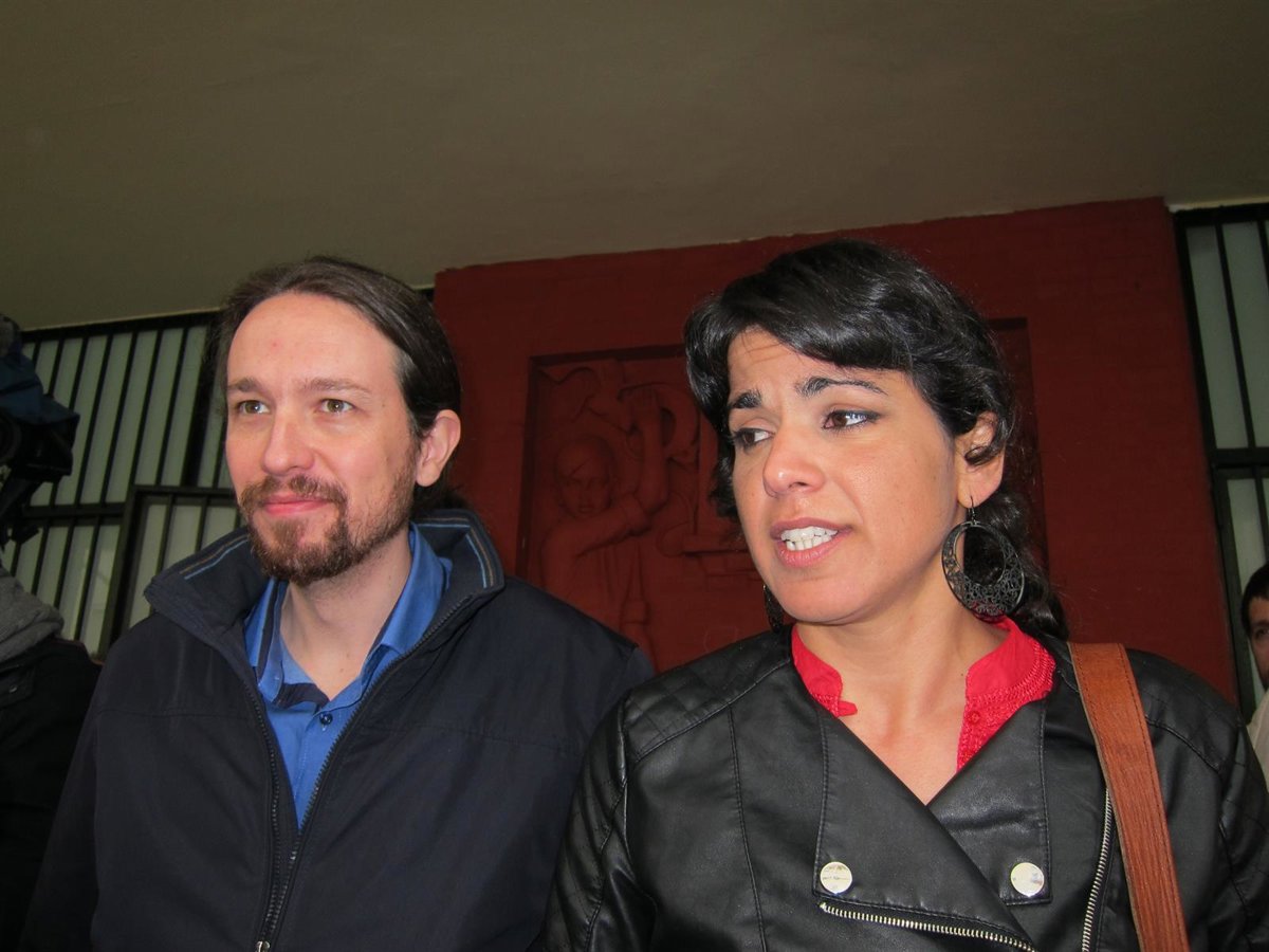 La candidata de Podemos a la Junta ha entrado con Iglesias en el CEIP Santa Teresa y posteriormente ha salido sola para atender a los medios de comunicación, a los que ha detallado la agenda de trabajo desarrollada por ella y por Iglesias este viernes en la capital gaditana.