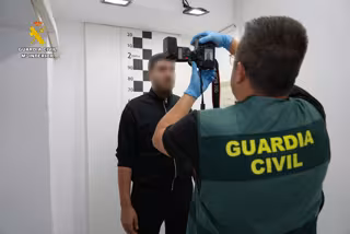Un agente de la Guardia Civil toma fotografías al detenido, Karim E.B, a 19 de septiembre de 2024, en Barbate, Cádiz, Andalucía (España). La Guardia Civil ha detenido hoy en Cádiz a Karim E.B. - Guardia Civil