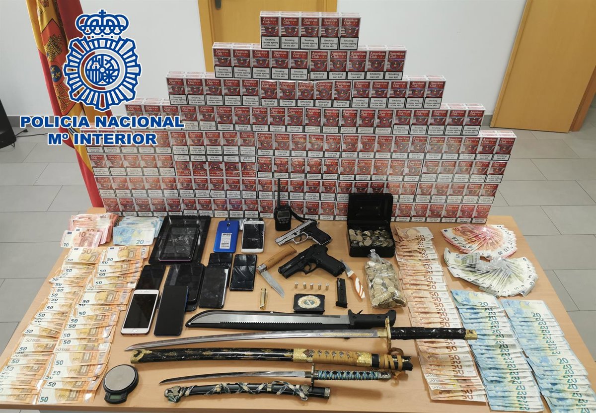 En los registros, los agentes se han incautado de distintas cantidades de cocaína, hachís y tabaco de contrabando, además de dos pistolas que están siendo analizadas, varias armas blancas y gran cantidad de dinero cuyo origen vendría de la venta ilegal de las sustancias estupefacientes con las que traficaban.