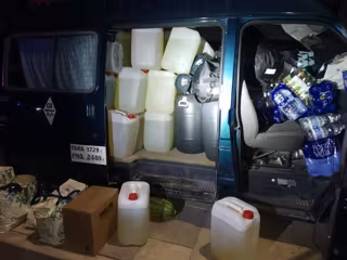 En el interior de la furgoneta, donde no había más pasajeros, se han localidado unas 125 garrafas de gasolina, alimentos y prendas de ropa, todo ello presuntamente destinadas al tráfico de estupefacientes.