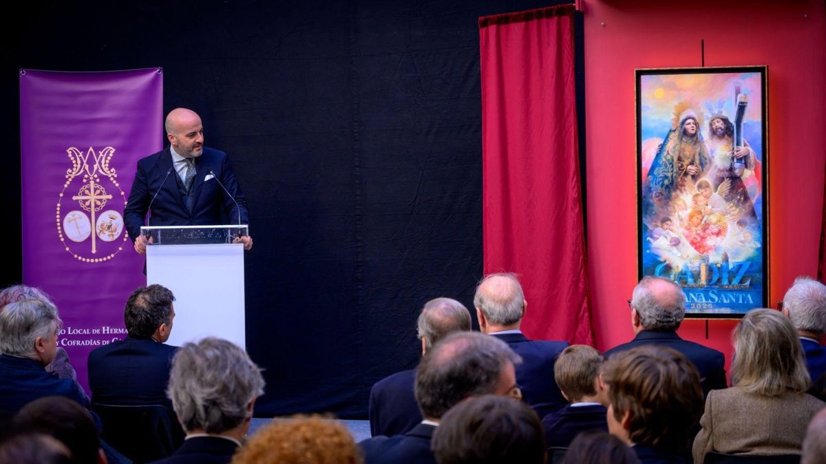 La Casa de Iberoamérica en Cádiz ha acogido este sábado la presentación del cartel que anuncia la Semana Santa de Cádiz 2026, obra de la pintora Isabel Sola, y del pregonero, el periodista Pablo Durio.
