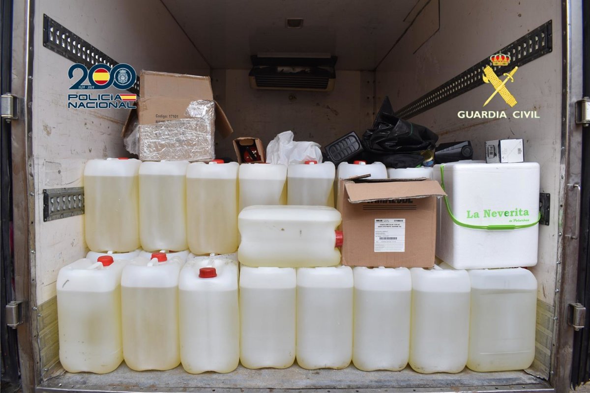Agentes de la Policía Nacional han detenido en Cádiz a un hombre tras ser sorprendido transportando 200 garrafas de combustible en el interior de una furgoneta en un control preventivo de tráfico. Tras ser puesto a disposición judicial se ha decretado su ingreso en prisión.