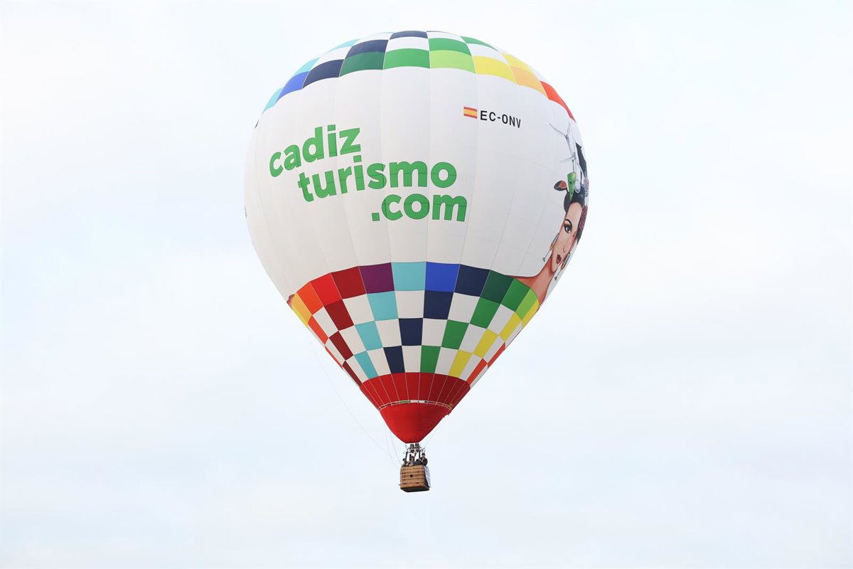 El globo del Patronato Provincial de Turismo con la imagen de la Gitana por los cielos de la Sierra de Cádiz, a 7 de mayo de 2025, en Cádiz (Andalucía, España). - Nacho Frade - Europa Press