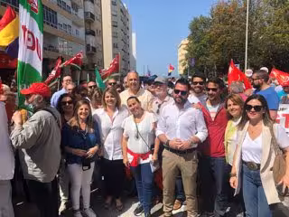 El secretario general del PSOE de Cádiz, Juan Carlos Ruiz Boix, ha celebrado este domingo junto a los sindicatos UGT y CCOO la manifestación del Primero de Mayo, Día Internacional del Trabajo.
