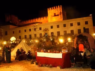El belén viviente de Arcos de la Frontera se compone de unas 30 escenas, pero la mejor opción es adentrarse en las callejuelas de la villa y sentir el calor de las hogueras, los aromas de antaño y cómo los figurantes le dan vida a toda una época en torno al nacimiento del Mesías. En Arcos, hasta el niño Jesús es un recién nacido.