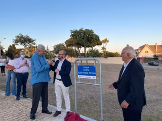 En un comunicado, el Ayuntamiento portuense ha informado este sábado del acto de inauguración de este parque, que contaba con la participación del alcalde de El Puerto de Santa María, Germán Beardo (PP); el hijo del escritor, José María Pemán Domecq, y su nieto Manuel Guerrero Pemán, que descubrieron la placa que da nombre al 'Parque Poeta José María Pemán', en la urbanización del Águila de Costa Oeste, entre las calles Mar de Filipinas y Gavilán.