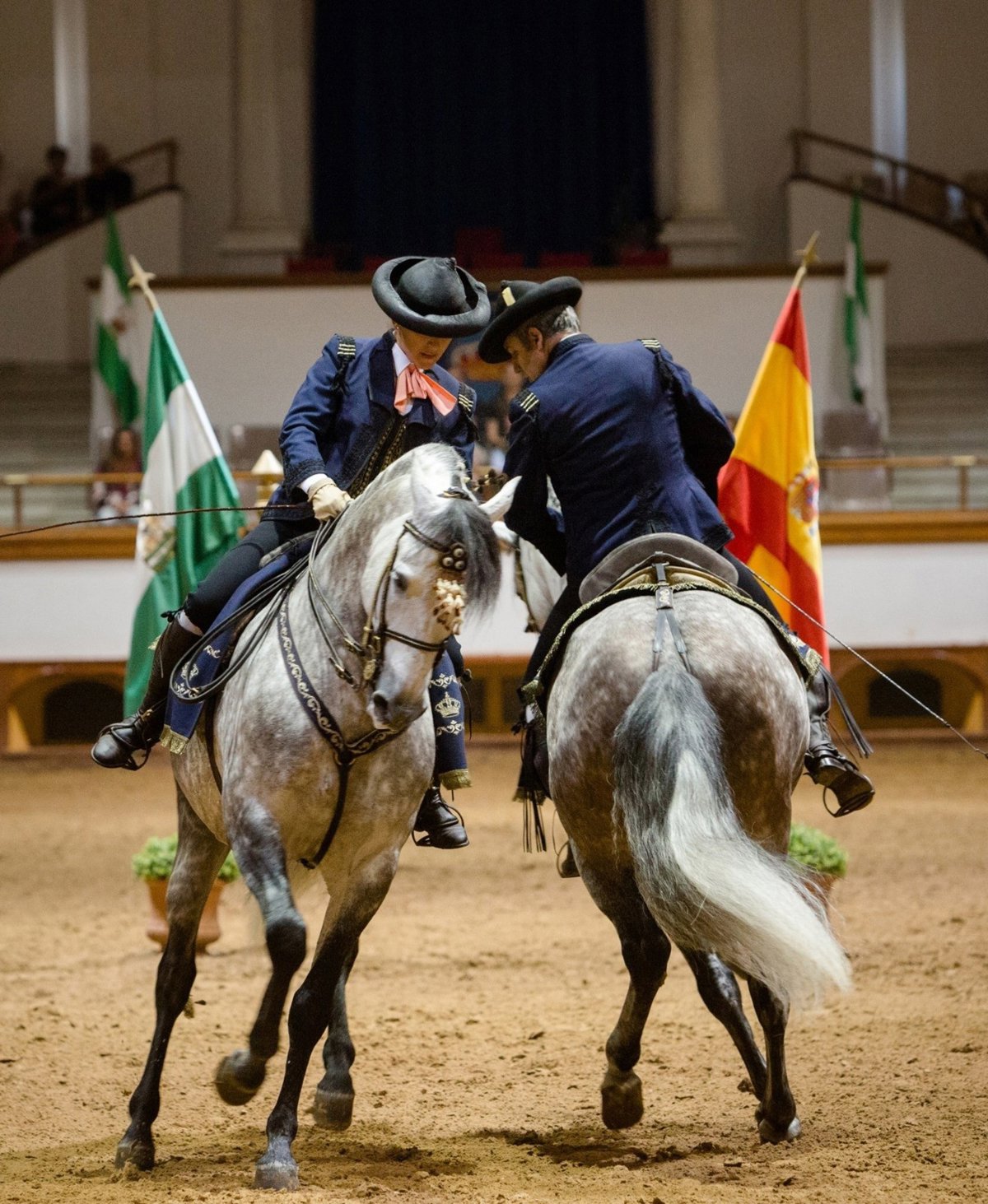 Para esta representación, que tendrá una duración de 90 minutos, los caballos de la Real Escuela estarán engalanados con arneses y mantas realizados en color verde y blanco y brindarán una exhibición de doma clásica y vaquera, así como otros trabajos de la equitación tradicional, en los que también participarán los enganches de la institución.