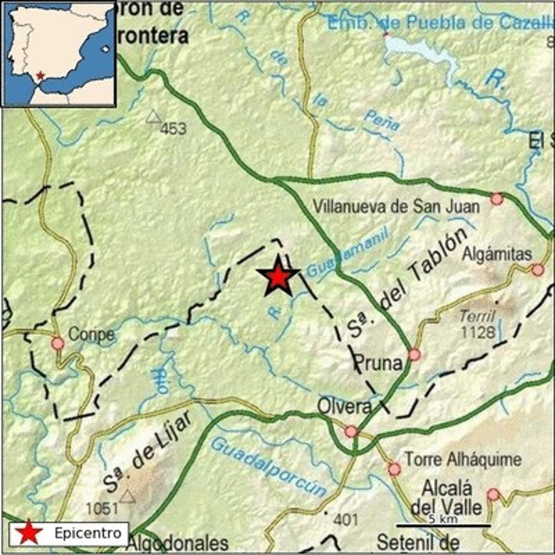Mapa del terremoto registrado en Olvera - IGN