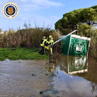 En este caso, los bomberos del parque de Arcos han acudido al lugar para asistir a los ocupantes atrapados, siendo trasladados sobre la espalda de los bomberos hasta una zona segura.