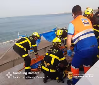 Efectivos de Bomberos del Consorcio Provincial en el parque de El Puerto de Santa María (Cádiz) han rescatado este lunes a un operario que ha sufrido un posible infarto mientras trabajaba desde el andamio de una azotea en este municipio.