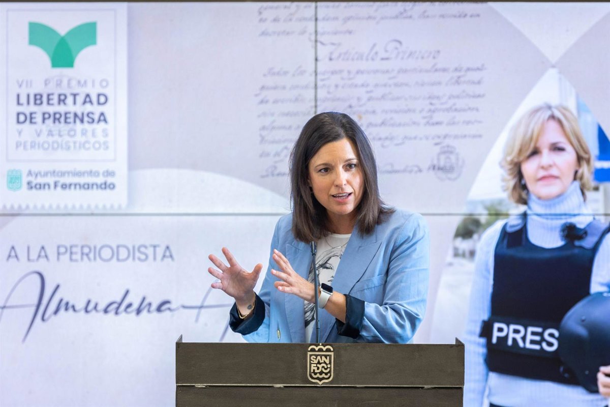 Archivo - La alcaldesa de San Fernando, Patricia Cavada, el pasado septiembre anunciando el VII Premio Libertad de Prensa y Valores Periodísticos a Almudena Ariza, corresponsal de RTVE. ARCHIVO. - AYUNTAMIENTO DE SAN FERNANDO - Archivo