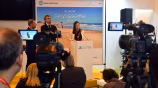 Con un 'flashmob' de jóvenes playeros previo a la presentación, Cavada ha comenzado su intervención haciendo referencia a las excelencias de Camposoto, destacando que, "aun existiendo muchas otras playas, la del término municipal isleño está abrigada por 10.500 hectáreas del Parque Natural, con kilómetros de zona virgen, ideal para el fomento del turismo respetuoso y lejos de los conceptos tumultuosos con los que habitualmente se relaciona el concepto de sol y playa".