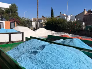 Kilos de sal tintada con la que se elaborará la alfombra para el paso de la patrona de Sanlúcar - AYUNTAMIENTO DE SANLÚCAR