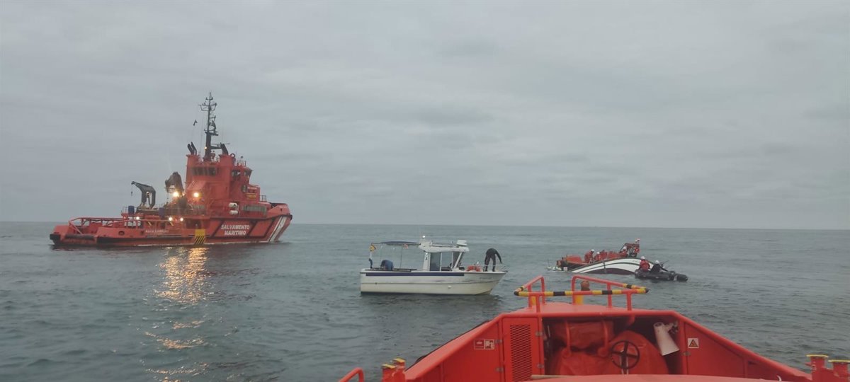 Como consecuencia del impacto, el pesquero Zara y Samuel, de ocho metros de eslora, está prácticamente hundido al haber quedado inundado de agua, movilizando Salvamento Marítimo a la embarcación de rescate Salvamar Suhail y al remolcador María Zambrano, para resolver la situación.