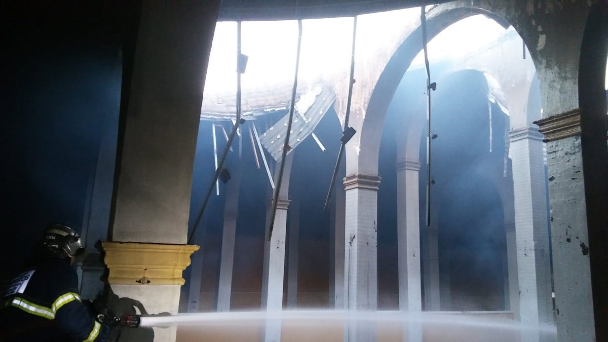 El fuego estaba localizado en una entreplanta, antes del primer piso, un espacio con varias habitaciones como oficinas, propagándose hacia la parte superior y afectando a la vigas de madera de la cubierta. Como consecuencia, se derrumba parte de ésta, aproximadamente unos 100 metros cuadrados de cubierta.