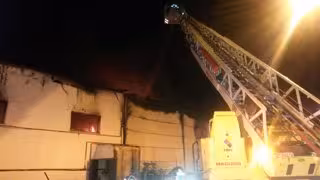 Según han explicado los efectivos, una de las partes de la nave se encontraba en llamas cuando llegaron los Bomberos, que fueron avisados por el servicio de Emergencias en torno a las 23,40 horas de la noche de este viernes, y cuya actuación "en estos momentos permanece abierta".