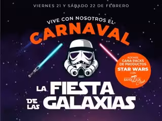El centro comercial Bahía Sur, en San Fernando (Cádiz), acogerá este fin de semana "una auténtica 'Fiesta de las Galaxias'" con talleres infantiles de robótica inéditos en la provincia, un pasacalles con los personajes más conocidos de Star Wars, la actuación de la chirigota ilegal 'Lo que sarga, sargó', un photocall galáctico y una exposición de las figuras oficiales de la saga.