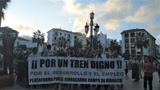 'Por un ten digno. Por el desarrollo y el empleo' ha sido el lema de la pancarta que ha encabezado una nueva manifestación de La Plataforma por el Ferrocarril del Campo de Gibraltar en la tarde de este jueves en Algeciras (Cádiz), que ha convocado a unas 2.000 personas.