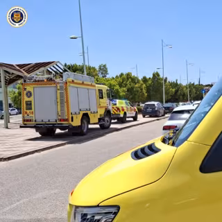 Tras ser informados de que un trabajador se había precipitado al suelo desde el techo de una nave, una vez en el lugar de los hechos los efectivos de bomberos colaboran con los Servicios Sanitarios del 061 para estabilizarlo y trasladarlo a la ambulancia medicalizada, donde es atendido y evacuado.