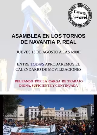 Asimismo, según han señalado a Europa Press desde la Coordinadora de Trabajadores del Metal Bahía de Cádiz, estos trabajadores reclaman también el "cumplimiento de los convenios porque ni las empresas los respetan ni Navantia hacen que los respeten".