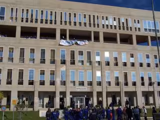 La plantilla del astillero de Navantia Puerto Real (Cádiz) ha protagonizado este viernes una medida de protesta para reclamar carga de trabajo, la cual ha consistido en transformar la concentración que tenían inicialmente prevista en un encierro que se ha prolongado durante algo más de una hora en la dirección del centro, donde han desplegado una pancarta reivindicativa.
