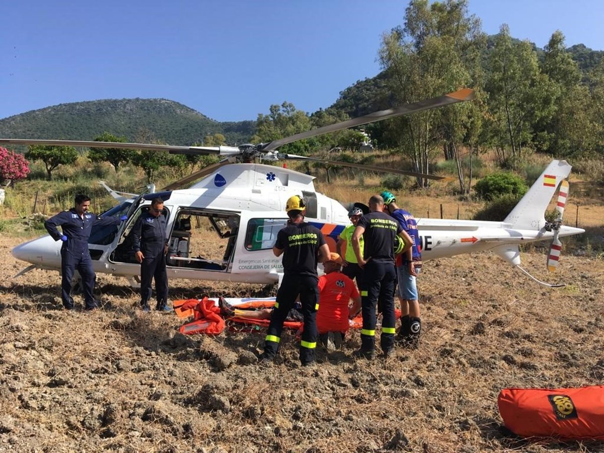 El Grupo de Rescate en Montaña (GRM) del Consorcio de Bomberos de la Provincia de Cádiz ha rescatado este mediodía a un ciclista que se había caído en un barranco desde una altura de unos diez metros y que ha sido evacuado al Hospital Universitario de Jerez de la Frontera (Cádiz) en helicóptero.