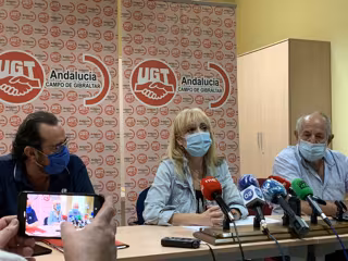 La secretaria general de UGT Andalucía, Carmen Castilla, junto al secretario general de UGT Cádiz, Antonio Pavón, y al secretario comarcal de UGT en el Campo de Gibraltar, Ángel Serrano, han analizado la realidad sociolaboral de Andalucía, y de Cádiz en particular, para quien han pedido al Gobierno central que apueste por la provincia para sacarla de los niveles de desempleo.