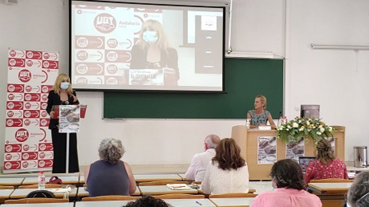 La secretaria de UGT-A ha explicado que en la jornada se debatirá sobre "algo importantísimo a lo que hay que estar muy atentos, la ley de teletrabajo no significa conciliación laboral y familiar". "Se está viendo un despunte de un sesgo femenino, y eso qué significa, pues que hay más mujeres trabajando que hombres en su casa".