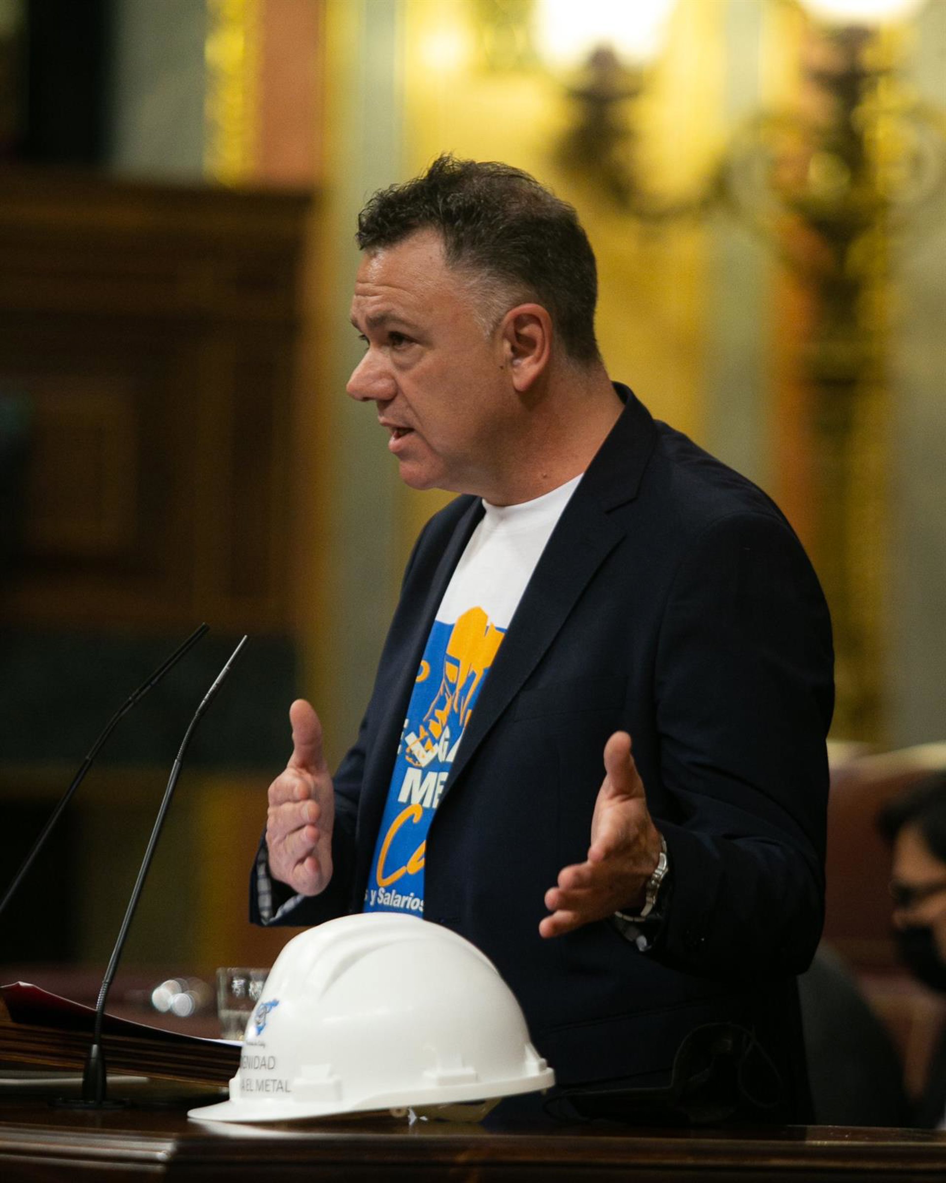 Archivo - El diputado por Cádiz de Unidas Podemos en el Congreso, Juan Antonio Delgado, junto con un casco de obra llevó a Madrid cuando el conflicto del metal en la Bahía. - UNIDAS PODEMOS - Archivo