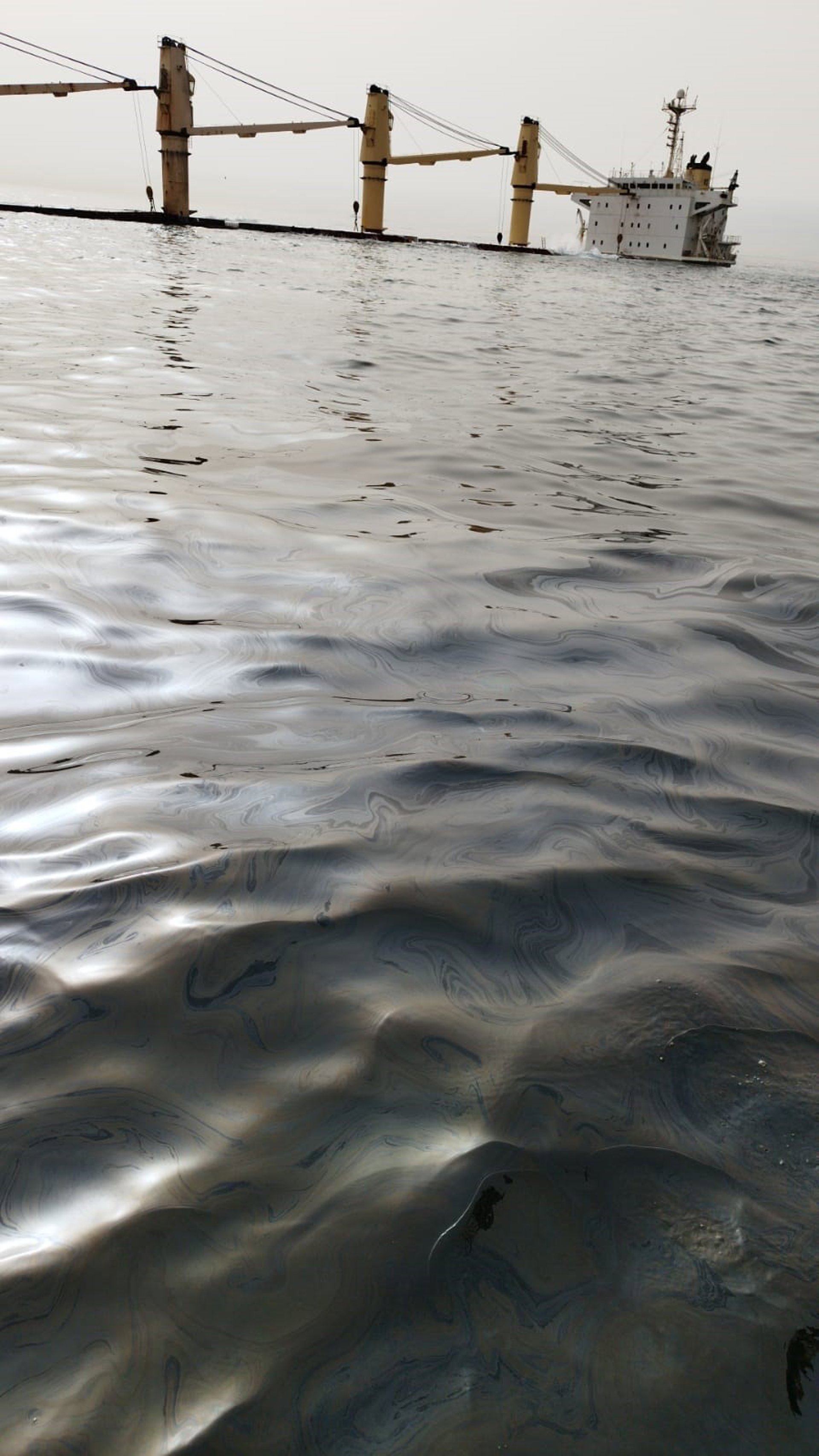 Restos de hidrocarburo en el agua con el OS35 de fondo. - VERDEMAR