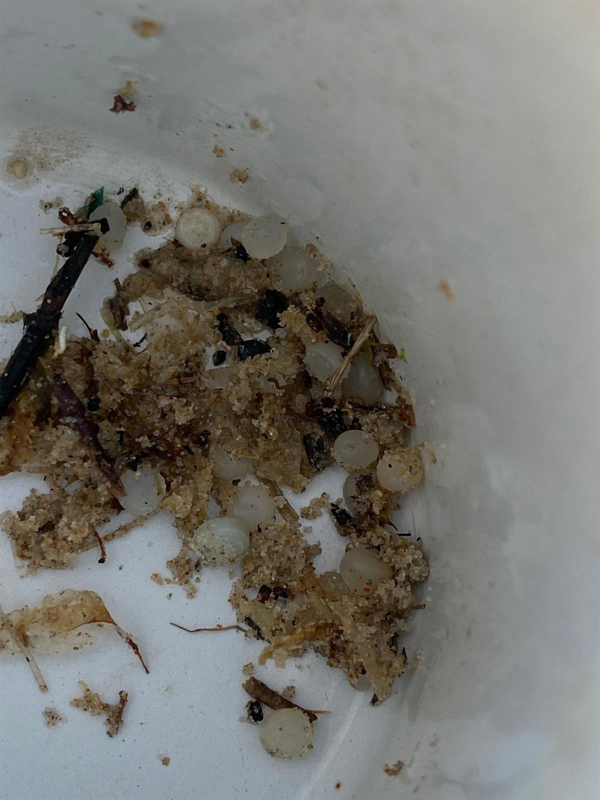 Bolitas de pélet recogidas en la playa de Bolonia en Tarifa. - VERDEMAR