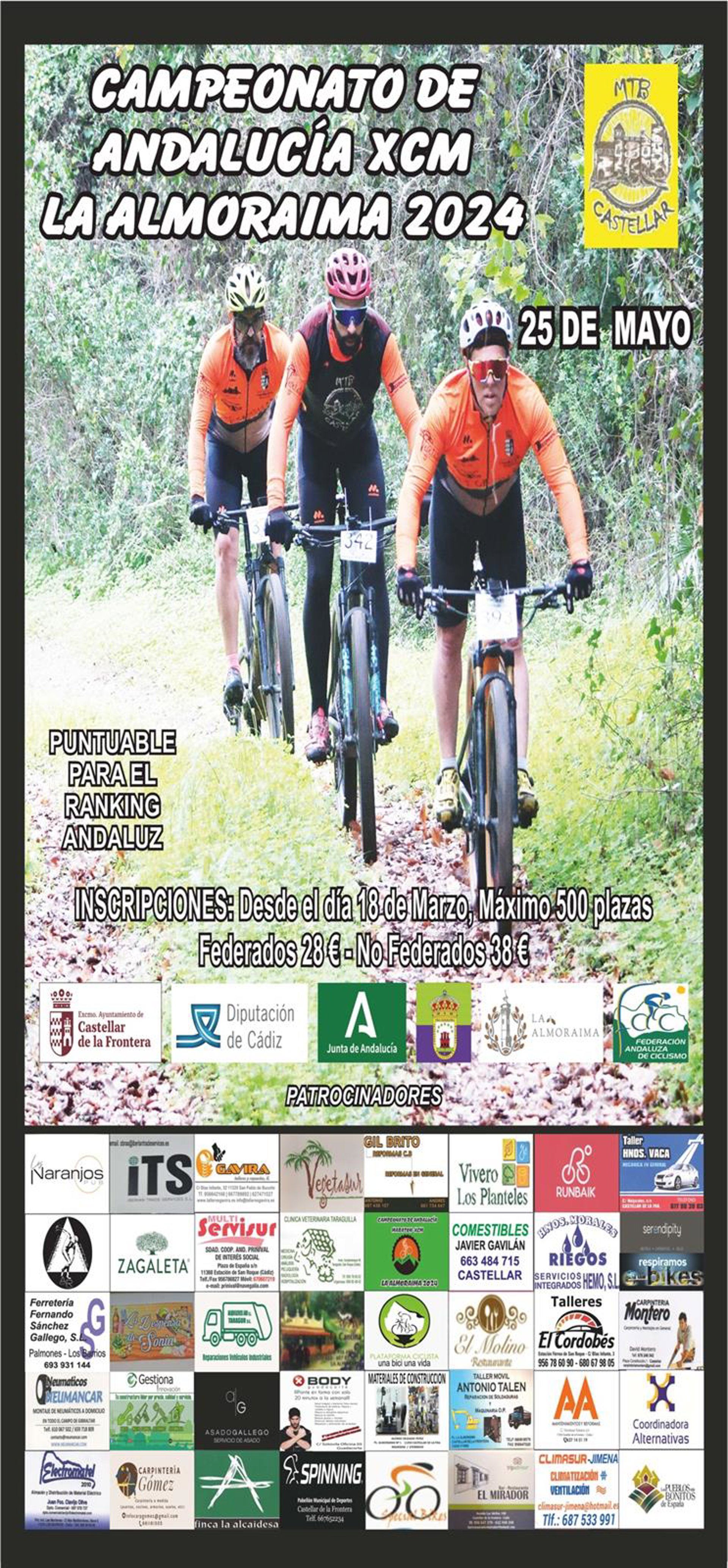 La localidad campogibraltareña de Castellar de la Frontera tiene todo preparado para acoger este sábado una de las grandes citas del calendario ciclista andaluz para la presente temporada, el Campeonato de Andalucía BTT Maratón-La Almoraima 2024, que determinará los nuevos campeones andaluces de larga distancia en bicicleta todo terreno. La competición ha sido organizada por el club MountainBike Castellar, con el respaldo de la Diputación de Cádiz, entre otras entidades.