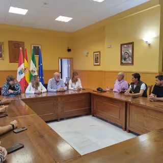 El vicepresidente segundo y responsable del Área de Transición Ecológica y Desarrollo a la Ciudadanía, Javier Vidal, y la diputada Vanesa Beltrán, en calidad también de alcaldesa de Prado del Rey, han mantenido en el Ayuntamiento de la localidad serrana un encuentro con representantes de la Asociación Apícola de la Sierra de Cádiz, al que también asistieron apicultores de otras zonas de la provincia, para buscar vías de colaboración ante la expansión del avispón oriental.