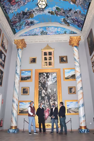 El propio artista ha acompañado a las autoridades en esta visita al edificio que alberga no sólo las pinturas de sus techos, sino también una colección permanente de su obra.