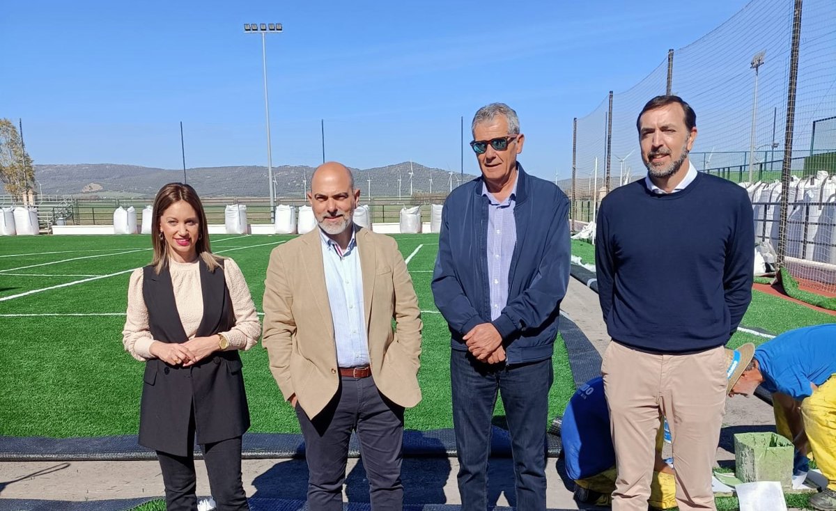 Allí han podido supervisar los trabajos que se están llevando a cabo en el campo de fútbol 7, donde se procede a la mejora del césped artificial.