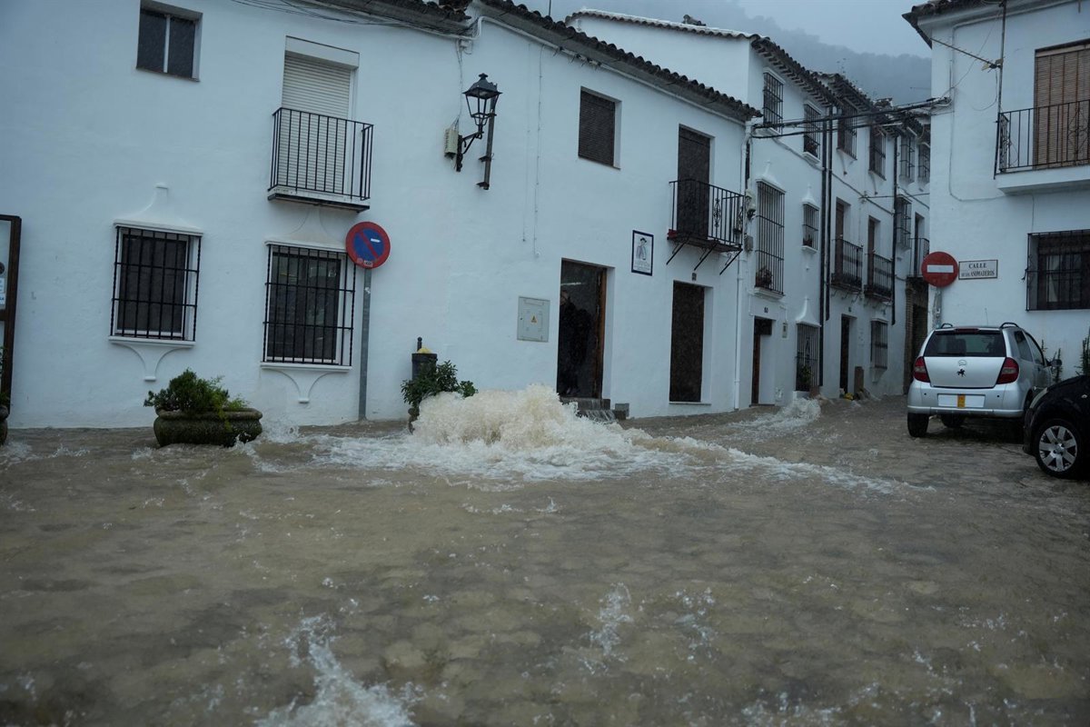Calle convertida en río en la localidad gaditana de Grazalema tras el paso de la borrasca Leonardo. A 4 de febrero de 2026, en Grazalema, Cádiz (Andalucía, España). - Joaquín Corchero - Europa Press
